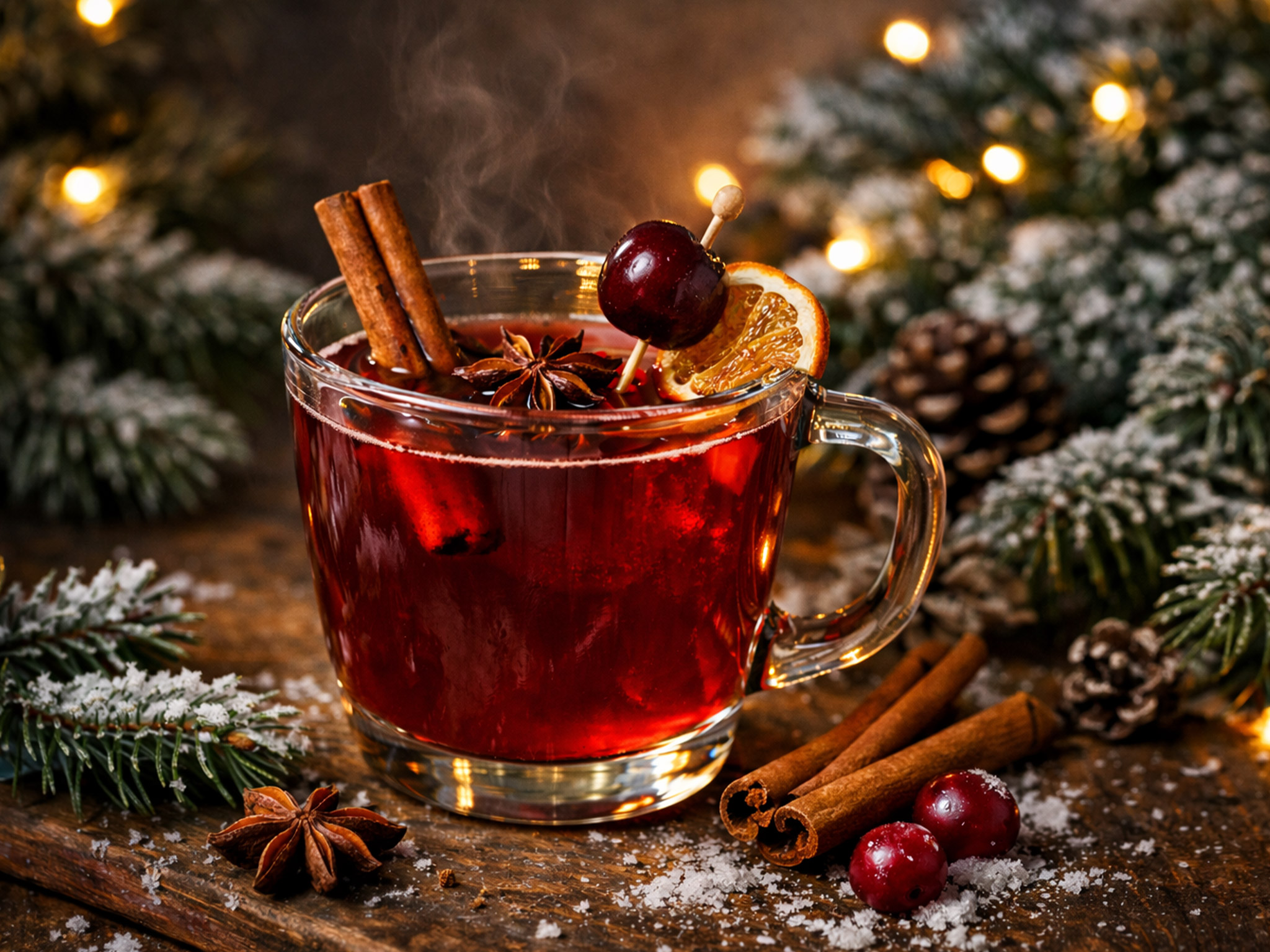 Kirschsaft, Zitronensaft, Honig und Zimt sanft erhitzen 👉 nicht kochen!